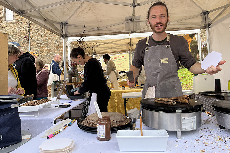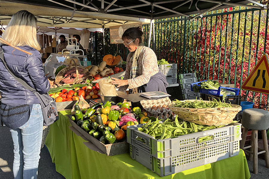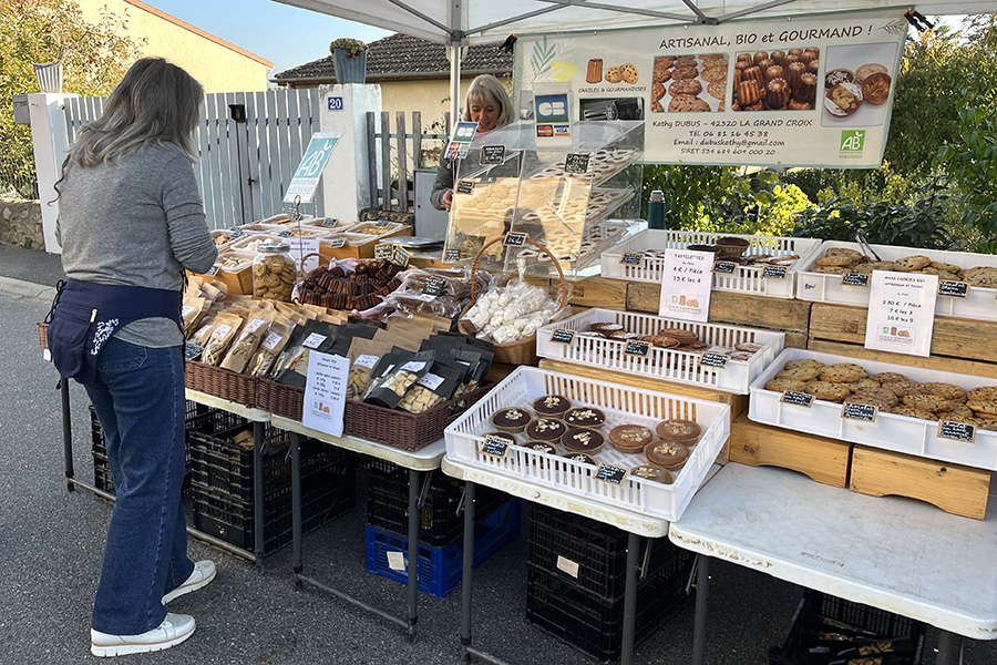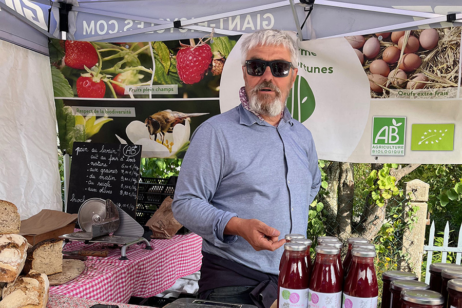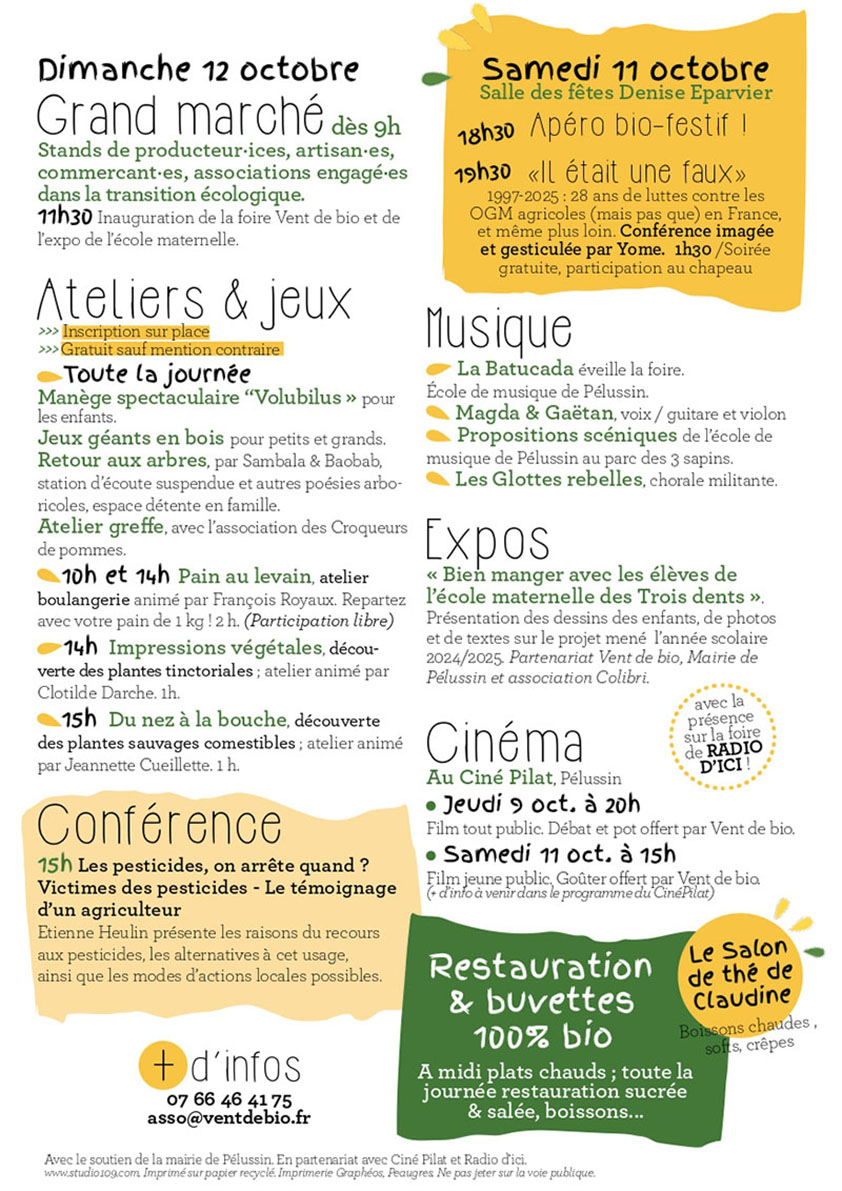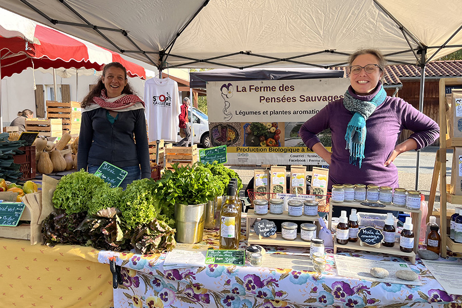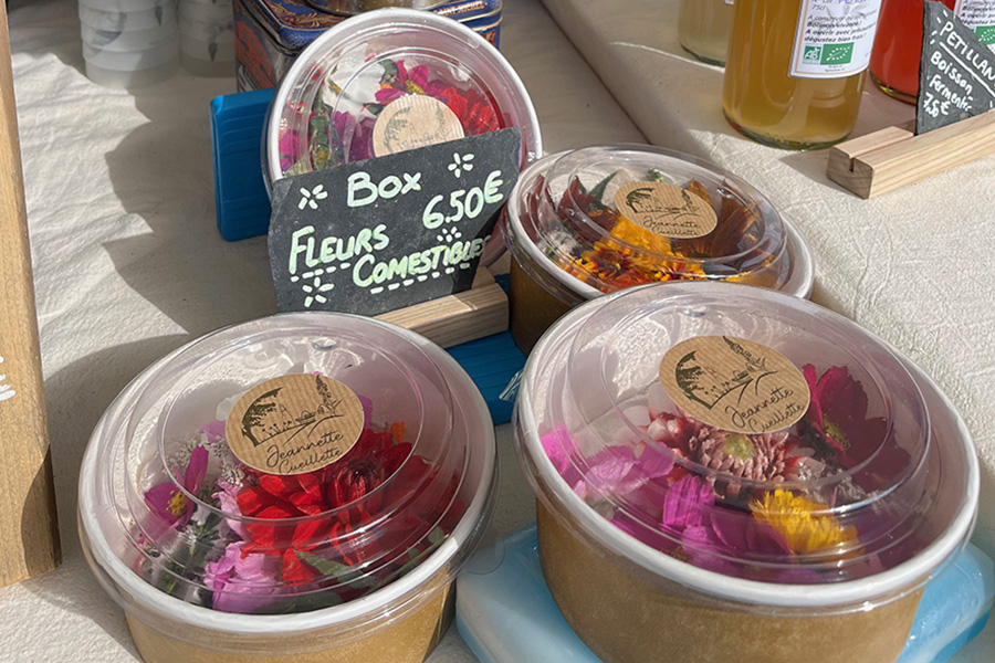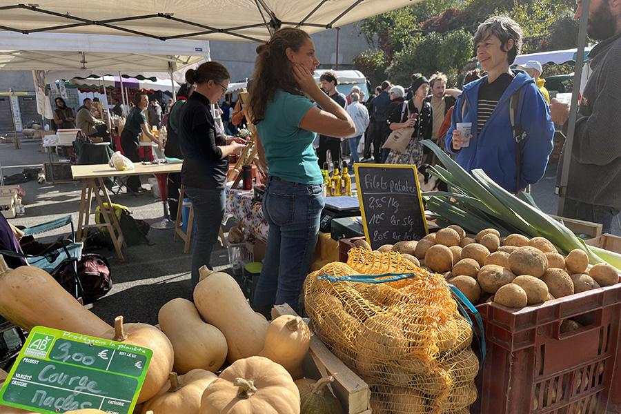 Stands de producteur·ices, artisan·es, commercant·es et associations engagé·es dans la transition écologique : légumes et fruits, huiles, pains, vins, fromages, viandes, confitures, sirops, miels, chocolat, biscuits, cosmétiques, plantes aromatiques, livres, vêtements…
